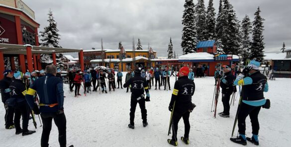 There were a good 40 skiers at our pre ski briefing with an unknown number already headed out earlier. Karen Adie Henderson along with Nancy Crerrar had departed before our 10am start and also skiing for a great cause—raising both awareness and funds for cancer research. Michel Auclair, Mike van Oorschot, Paul Guy and a visiting friend had already begun what turned into a 44K ski, they took on the S2S long course and a little more, kudos to them.
